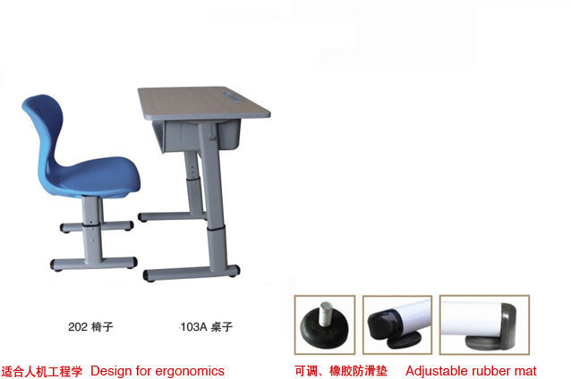 - 可調(diào)節(jié)課桌臺面采用三聚氰胺飾面板注塑包邊無接縫,規(guī)格長60cm,寬45cm,臺面厚度為1.8cm,可調(diào)節(jié)高度為66-78cm;