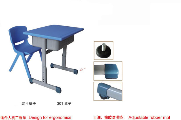- 幼兒園學生課桌椅的課桌臺面采用進口PE塑料中空成型,規(guī)格長60cm,寬45cm,臺面厚度為2.5cm,可調節(jié)高度為60-72cm;
